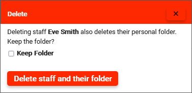 - Optionally select to Keep Folder. When selected, the staff member’s personal folder will not be deleted.